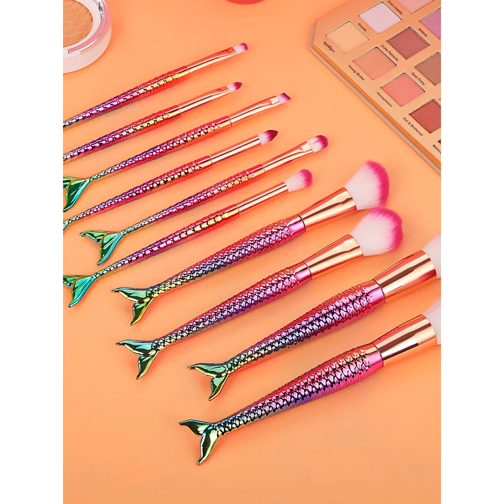 Kit com 10 pincéis calda de sereia maquiagem, pincel cores metalizadas.